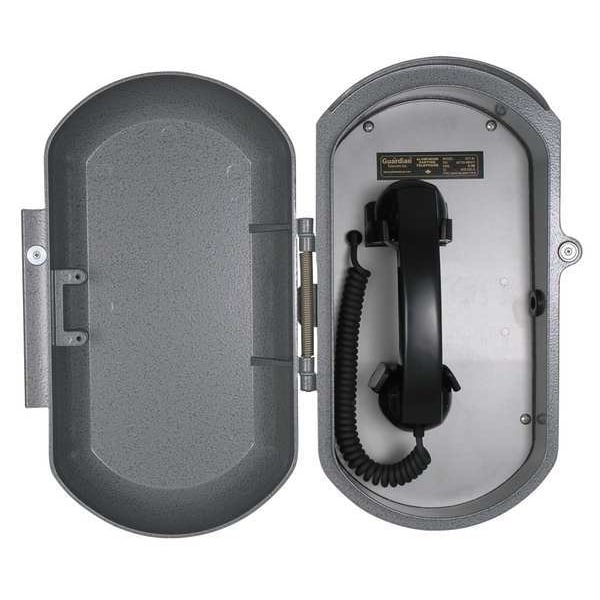 Aluminum Casting Ringdown Telephone, Overall Depth 6 in, Overall Height 15 3/8 in, Overall Width 9 1/4 in, Volume Control Yes, Indoor/Outdoor Usage Outdoor, Standards FCC TCB, Industry Canada TCA-10126721A, Number of Lines 1, Cord Length 6 ft, Mounting Location Wall, Enclosure Material Aluminum, Includes Enclosure Yes, Maximum Operating Temperature 176 Degrees F, Minimum Operating Temperature -76 Degrees F, Color Gray, Network Interface 10/100 mbps, Network Protocol PSTN