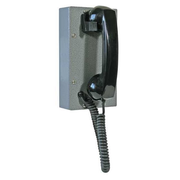 Compact Steel Ringdown Telephone, Overall Depth 2 1/4 in, Overall Height 9 in, Overall Width 5 in, Volume Control Yes, Indoor/Outdoor Usage Indoor, Standards FCC Part 15 Class A, IEC 61000-6-2:2005, Industry Canada ICES-003 Class A, Number of Lines 1, Mounting Location Wall, Enclosure Material Steel, Includes Enclosure Yes, Facility Type Commercial, Maximum Operating Temperature 140 Degrees F, Minimum Operating Temperature -22 Degrees F, Color Gray, Network Protocol VoIP