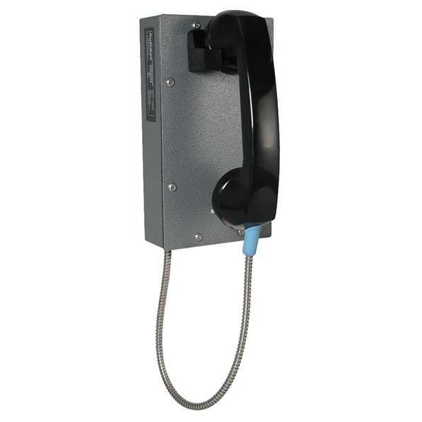 Correctional Ringdown Telephone, Overall Depth 5 1/4 in, Overall Height 9 in, Overall Width 5 in, Indoor/Outdoor Usage Indoor, Outdoor, Standards ISO 9001:2015, Number of Lines 1, Cord Length 16 in, Mounting Location Wall, Enclosure Material Steel, Includes Enclosure Yes, Maximum Operating Temperature 176 Degrees F, Minimum Operating Temperature -76 Degrees F, Color Gray, Resistance Properties Corrosion Resistant, Features Noise Reducing Microphone, Cord Type Armored
