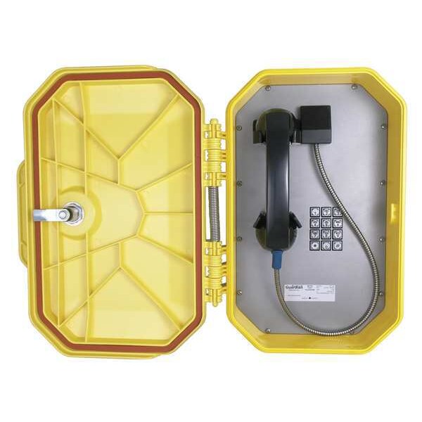 Hazardous Area Steel Water Tight Telephone, Overall Depth 8 1/2 in, Overall Height 14 in, Overall Width 11 3/4 in, Volume Control Yes, Indoor/Outdoor Usage Outdoor, Standards CSA Certified, FCC TCB, Industry Canada ICES-003 Class A, Number of Lines 1, Mounting Location Wall, Enclosure Material Plastic, Enclosure Rating NEMA 4X, Includes Enclosure Yes, Facility Type Commercial, Maximum Operating Temperature 140 Degrees F, Minimum Operating Temperature -40 Degrees F, Color Yellow