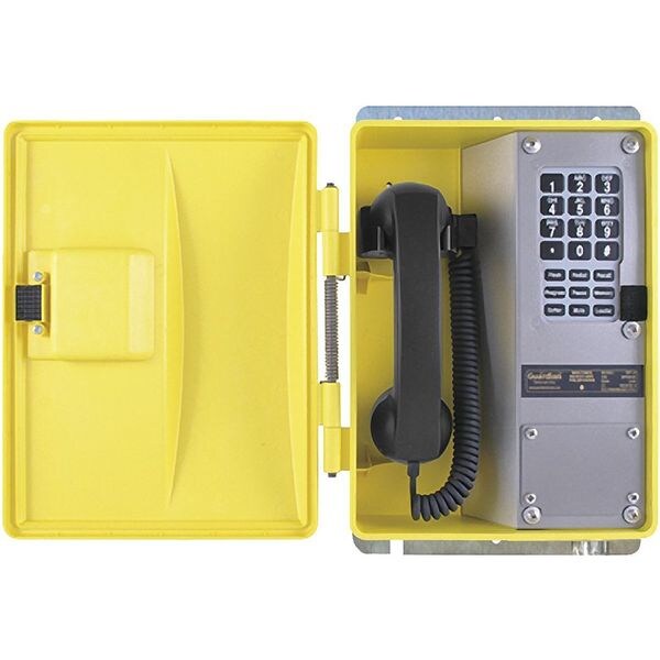 Telephone, Overall Depth 4 in, Overall Height 12 in, Overall Width 9 3/4 in, Volume Control Yes, Indoor/Outdoor Usage Outdoor, Standards CSA Certified, FCC TCB, Industry Canada 10124041A, Number of Lines 1, Mounting Location Wall, Enclosure Material Plastic, Enclosure Rating NEMA 3R, Includes Enclosure Yes, Facility Type Commercial, Maximum Operating Temperature 140 Degrees F, Minimum Operating Temperature -40 Degrees F, Color Yellow
