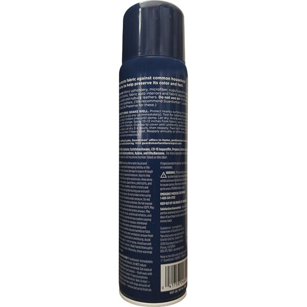 Guardsman Fabric Defense is a fabric stain protector spray that helps keep your fabric looking newer for longer. It is odorless when dry wont change the look or feel of the material and offers the best fabric protection against stains and spills on the market. Use the spray to protect fabric carpets and upholstery. Our furniture fabric protector meets the demands of homeowners and furniture professionals and is safe for use on all types of fabric.