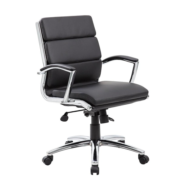 Black Executive Mid Back - Padded Chrome Arm, Chrome Base