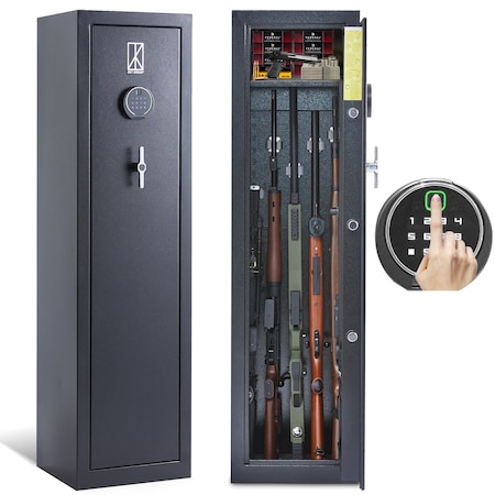 Rifle Safe, Fingerprint & Digital Quick Access Gun Cabinet with Removable Shelf for Home 5-7 Rifles