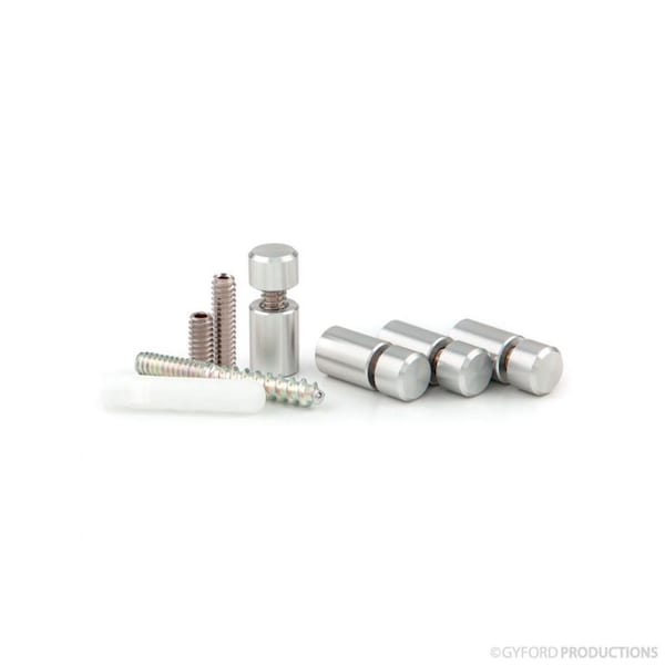 Complete standoff kit with everything you need to install a sign or display. Clear Anodized Aluminum.