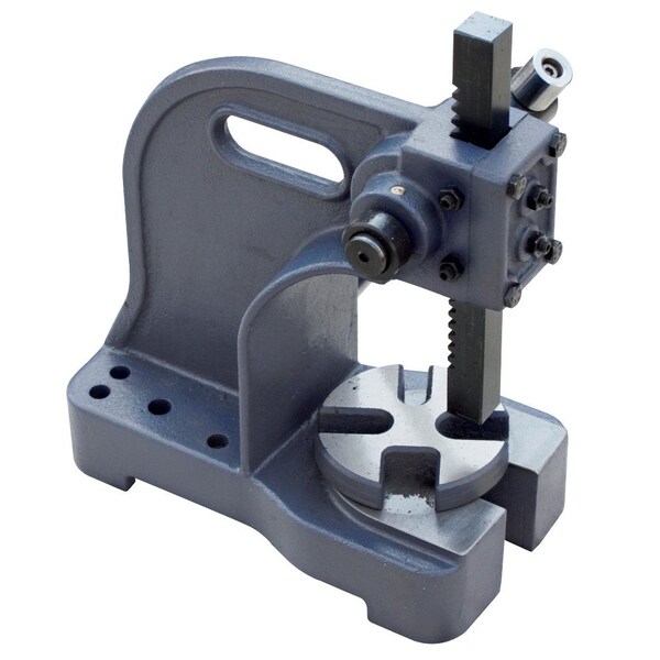 1/2 Ton Pro-Series Arbor Press ~ For riveting, squeezing, punching, bending, and other pressing applications. ~ Base is drilled for mounting on a bench or pedestal. ~ Sturdy, cast-iron construction. ~ Removable machined steel anvil provides accurate work suppport in four slot positions. ~ Rugged steel ram is driven by a machined pinion. ~ Punches or tools may be added to the end of the ram with the aid of a magnetic insert.