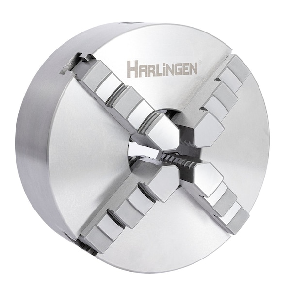 Harlingen 4" 4-Jaw Self-Center Lathe Chuck Plain Back ~ 2 Sets of jaws. ~ Body is entirely made of wear-resistant semi-steel No.40/No.45 (ASTM) providing a higher hardness at HB190-220 compared to other brands using HT250 cast iron with hardness of HB180-220. ~ High quality No.35 (ASTM) is used to achieve a higher accuracy, strength and extended tool life. Competitors use HT150 cast iron or engineering plastics as a substitute. ~ Specific machines and fixtures have been adapted to process H-Groove simultaneously so the clamping accuracy is guaranteed. ~ Jaw are made of hardened carbon 1045 (ASTM) steel. ~ The jaws are pressed individually to ensure precise fit, powerful clamping performance and each jaw is interchangeable while maintaining accuracy. ~ The scroll is made of hardened and precision machined 5140 (ASTM) to enhance wear resistance and strength. ~ Scroll face threads are processed with high accuracy CNC machining which inproves self-centering performance. ~ Pinions are made of 20CrMnTi with a quenching procedue to enhance wear-resistance and strength. ~ Each chuck body has its own ID and is 100% inspected with trackable data. ~ Lathe Chuck wrench & 1 set of mounting screws included.
