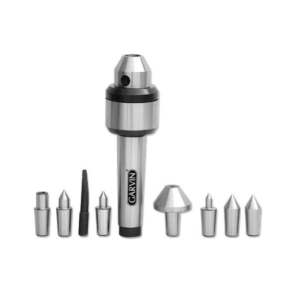 MT2 7 Piece Live Center Set ~ Set includes 5 live center heads, 1 bull nose center head, 1 female center, and 1 drift key. ~ Assembled with three bearings. ~ Made from hardended and ground steel. ~ Multi shape points for a wide range of applications.