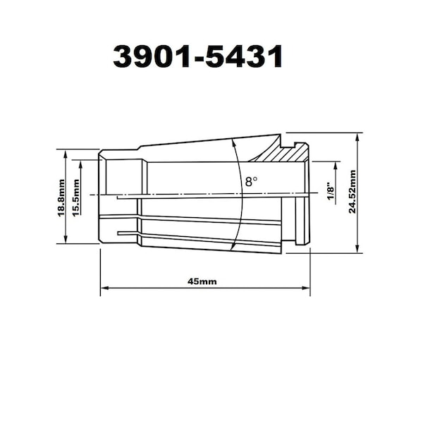 Pro-Series 1/8" SK16 Lyndex Style Collet ~ Collapse range is 0.112-0.125". ~ Vacuum quenching heat treatment to hardness HRC46~50. ~ Runout is less than or equal to 5 Micron. ~ Collet front cone convex platform design reduces the entry of dust and chips increasing service life. ~ The SK slim collet system features an 8° taper angle versus the 16° taper for ER type collets. ~ The SK style collet has greater gripping force than ER collets. ~ SK collets sit deeper in the tool holder compared to TG and ER type collet systems resulting in higher accuracy and rigidity.