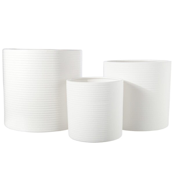 Ceramic Round Pot with Ribbed Pattern Body, Matte White - Set of 3 (Discontinued)