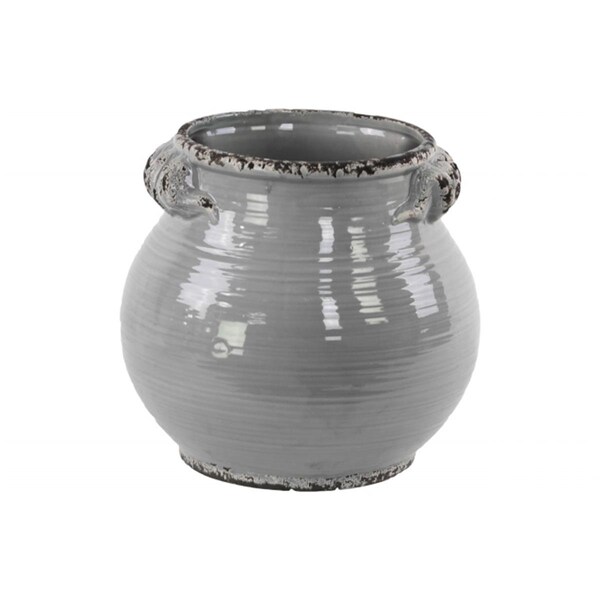 Ceramic Tall Round Bellied Tuscan Pot with Handles - Distressed Gloss Grey, Small (Discontinued)