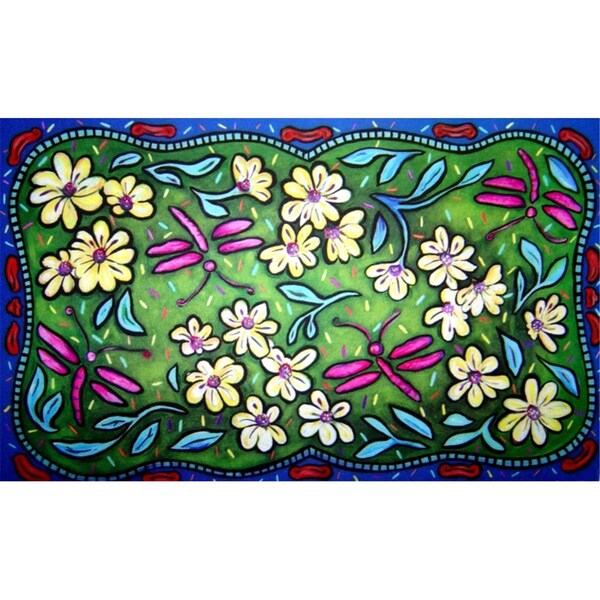 Flowers & Dragonflies Doormat Rug - 18 x 30 in.
