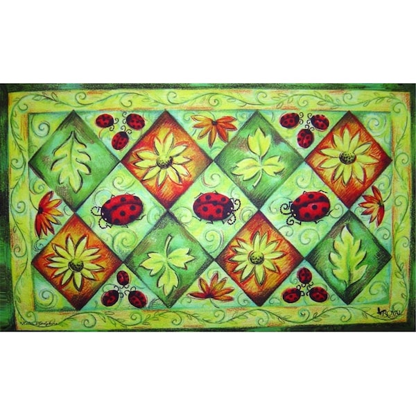 Lady Bug on Parade Doormat Rug, Green - 18 x 30 in.