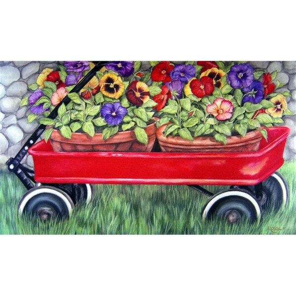 Little Red Wagon Doormat Rug, White - 18 x 30 in.