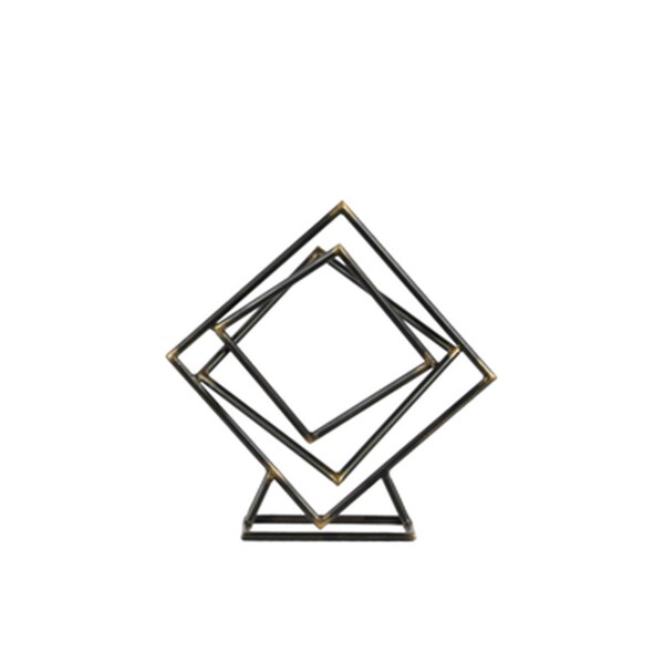 Small Metal Tangled Squares Abstract Sculpture on Square Base, Gunmetal Gray (Discontinued)