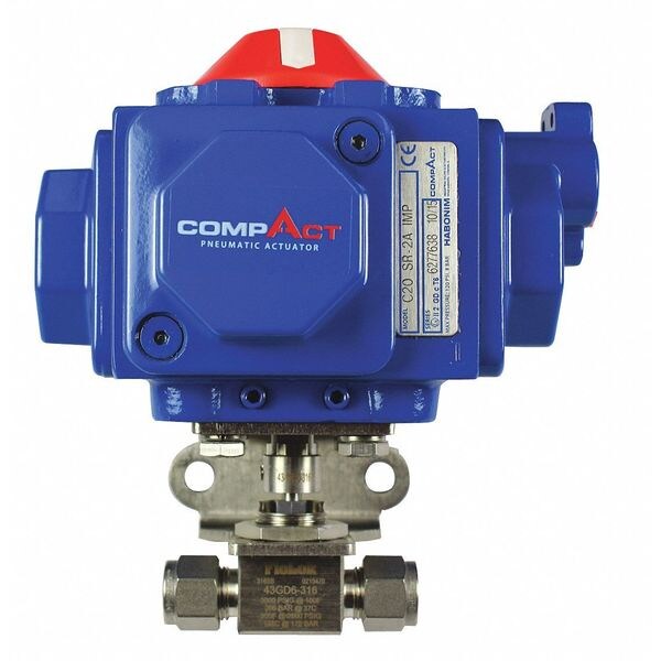 Pneumatic Actuated Ball Valve, Ball Material Stainless Steel, Body Material Aluminum, 316 Stainless Steel, Stem Material 316 Stainless Steel, Seal Material PEEK / PTFE, Seat Material PEEK