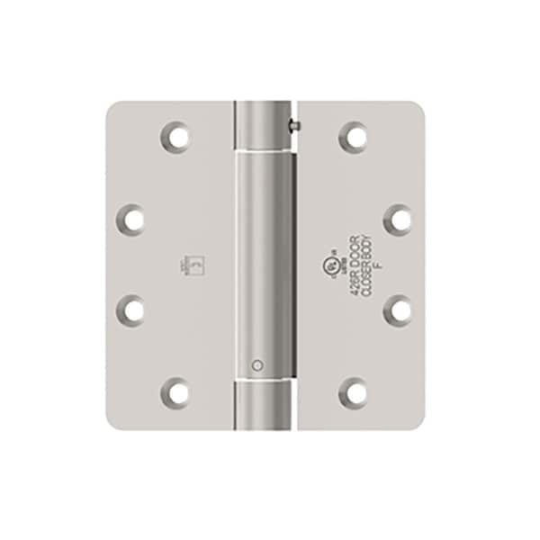 Full Mortise Spring Hinge, Standard Weight, 4-1/2 by 4-1/2, Steel, 1/4 Round Corners, Satin Chromium Plated Finish