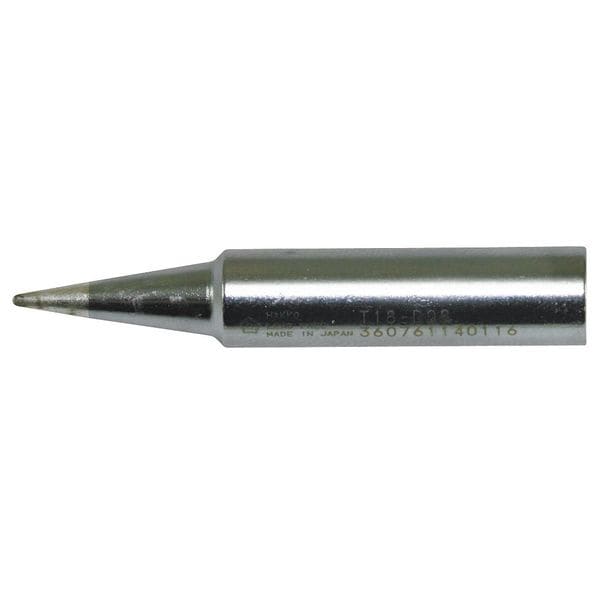 Soldering Tip, Tip Series T18, Tip Type Chisel, Tip Width 0.8 mm, Tip Length 14.5 mm, Maximum Operating Temperature 899 Degrees F, Compatible Handpiece Manufacturer Model Number 900M, 900M-ESD, 907, 913, FX-600, FX-8801, FX-8802, FX-8803, Tip Outside Diameter 0.8 mm, Tip Thickness 0.6 mm, Compatible Station 703, 928, 936, 936-ESD, 937, FR-701, FR-702, FX-888, FX-888D, FX-889, Compatible Handpiece Manufacturer Hakko, Application Soldering, Product Type Soldering Tip