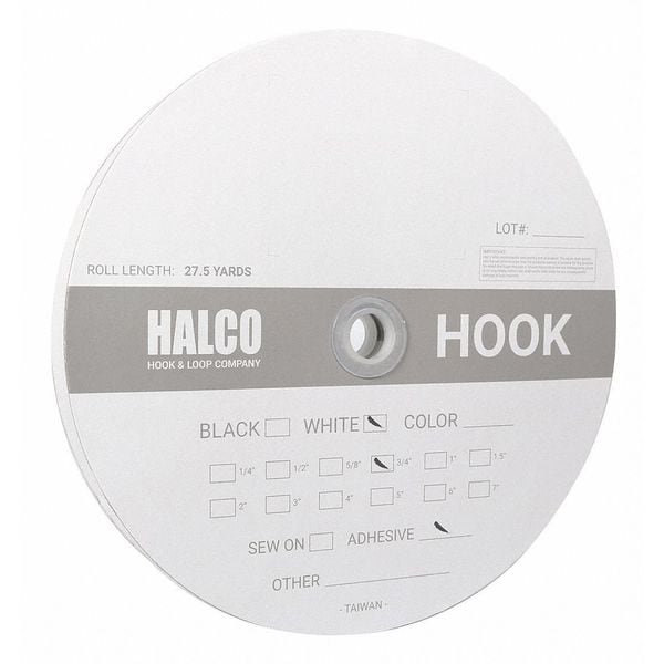 Reclosable Fastener, Rubber Adhesive, 27.5 yds, 3/4 in W, White