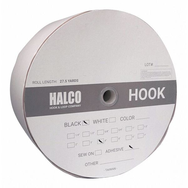 Reclosable Fastener, Rubber Adhesive, 27.5 yds, 4 in W, Black