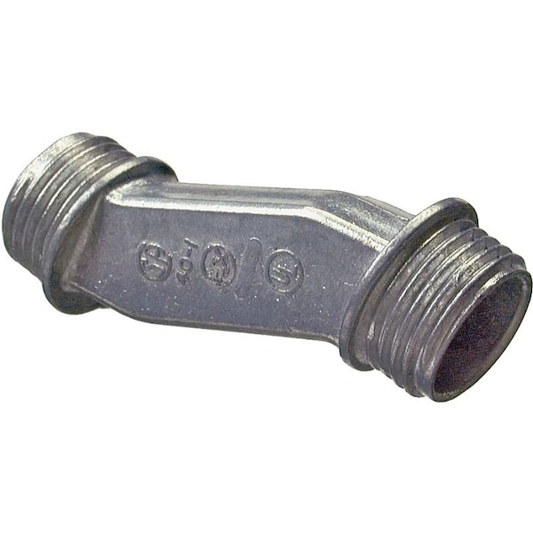 Zinc die-cast. Use as an offset connector between two enclosures. Offsets the axis of the raceway 3/4 in. UL listed.