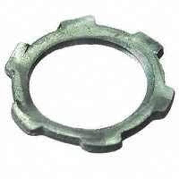 Steel with zinc plating. Indoor or outdoor applications. Use to secure Rigid or IMC conduit or various threaded fittings to a steel outlet box or other metal enclosure.