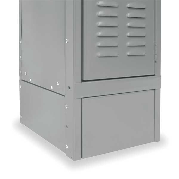 End Base, Base Type Side, Footplate Width 1/8 in, Number of Bases/Pedestals 1, Color Gray, For Locker Depth 15 in, For Locker Width 12 in, 15 in, Overall Depth 15 in, Overall Height 6 in, Overall Width 1/8 in, Product Type Base, Finish Powder Coated, Material Stainless Steel, Standards UL Listed