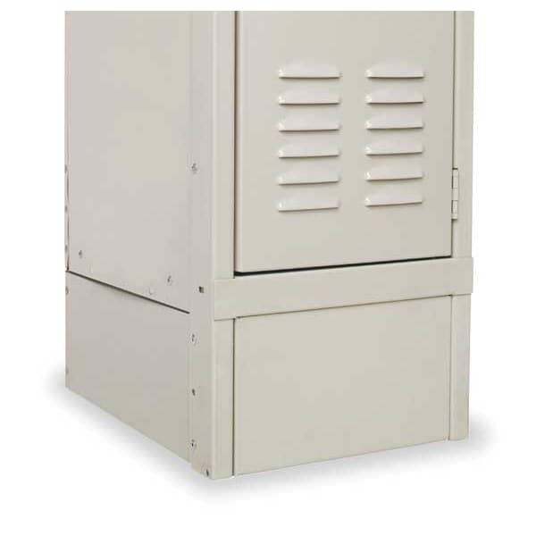 End Base, Base Type Side, Footplate Width 1/8 in, Number of Bases/Pedestals 1, Color Tan, For Locker Depth 18 in, For Locker Width 12 in, 15 in, 18 in, Overall Depth 18 in, Overall Height 6 in, Overall Width 1/8 in, Product Type Base, Finish Powder Coated, Material Stainless Steel, Standards UL Listed