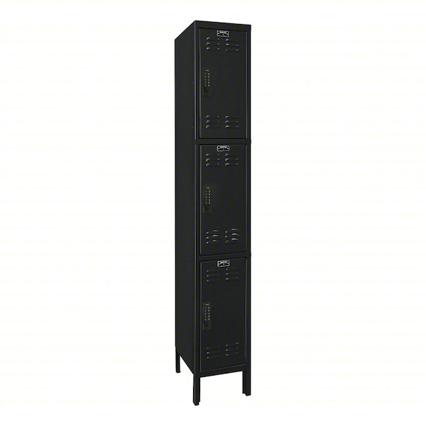 Locker, Audit Trail Storage Not Applicable, Frame Assembled Unassembled, Number of Tiers 3, Number of Units Wide 3, Door Type Louvered, Frame Material Thickness 24 ga, Includes Number Plates Yes, Locker Color Black, Lock Type 8-Digit Code/Key, Overall Depth 15 in, Overall Height 24 in, Overall Width 12 in, ADA Compliant Yes, Antimicrobial No, Base/Leg Height 6 in, Door Locking Points 1, Handle Type Side Latch, Includes CR123 Battery, Includes Hanging Rod No, Includes Slope Top Panel No
