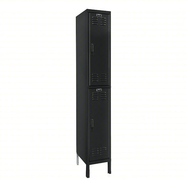Locker, Audit Trail Storage Not Applicable, Frame Assembled Unassembled, Number of Tiers 2, Number of Units Wide 1, Door Type Louvered, Frame Material Thickness 24 ga, Includes Number Plates Yes, Locker Color Black, Lock Type 8-Digit Code/Key, Overall Depth 15 in, Overall Height 36 in, Overall Width 12 in, ADA Compliant Yes, Antimicrobial No, Base/Leg Height 6 in, Door Locking Points 1, Handle Type Side Latch, Includes CR123 Battery, Includes Hanging Rod No, Includes Slope Top Panel No