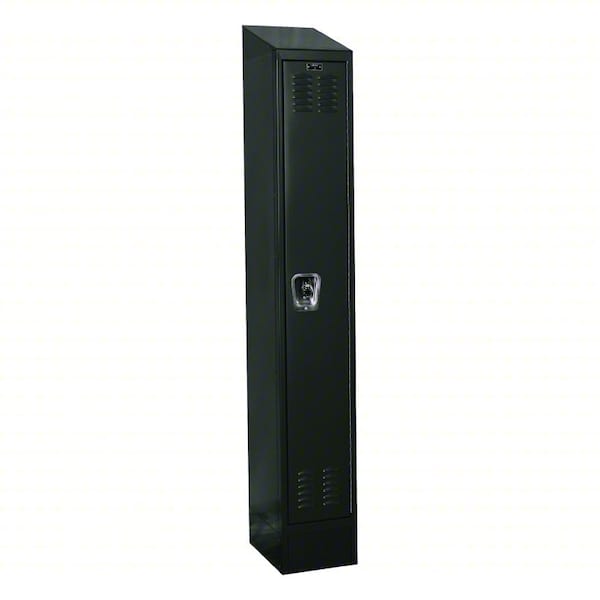 Locker, Audit Trail Storage Not Applicable, Frame Assembled Assembled, Number of Tiers 1, Number of Units Wide 1, Door Type Louvered, Frame Material Thickness 24 ga, Includes Number Plates Yes, Locker Color Black, Lock Type Combination/Padlock, Overall Depth 15 in, Overall Height 78 in, Overall Width 12 in, ADA Compliant No, Antimicrobial No, Base/Leg Height 6 in, Handle Type Recessed Lift, Includes Padlock Strike Plate, Padlock, Includes Hanging Rod No, Includes Slope Top Panel Yes