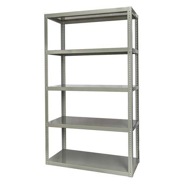 Metal Shelving, Gray, Powder Coated, Frame Material Steel, Load Capacity per Shelf 2,800 lb, Whole Unit Load Capacity 14,000 lb, Number of Shelves 5, Overall Depth 18 in, Overall Height 84 in, Overall Width 36 in, Post Construction Angle, Shelf Configuration Starter, Shelf Style Solid, Shelving Material Steel, Assembled Unassembled, Shelving Gauge 14 ga, Post Gauge 13 ga, Shelf Adjustment Increments 1 in, Number of Drawers 0, Duty Rating Extra-Heavy-Duty