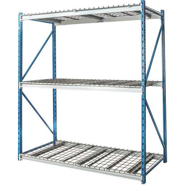 Bulk Storage Rack, Shelving Type Starter, Overall Width 48 in, Overall Depth 36 in, Overall Height 87 in, Decking Material Steel, No. of Shelves 3, Shelf Capacity 3,800 lb, Load Capacity 11,400 lb, Shelving Frame Material Steel, Marine Blue/ Light Gray, Finish - Shelving and Racks Powder Coated, Shelf Adjustments 3 in, Shelving Gauge 6, Shelving Post Gauge 14, Includes (2) Braces Per Level, Front to Back 16 Gauge U Channels