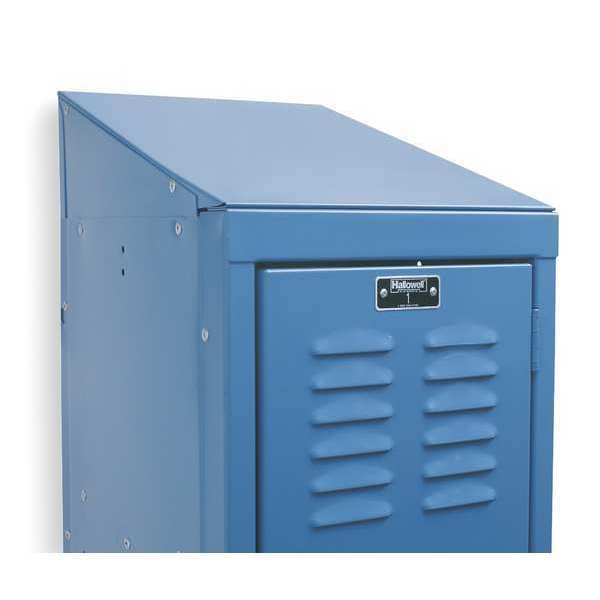 Locker Sloping Top, Color Marine Blue, For Locker Depth 15 in, For Locker Width 12 in, Overall Depth 15 in, Overall Height 5 in, Overall Width 12 in, Shape Sloping, Finish Powder Coated, Load Capacity Not Applicable, Product Type Sloping Top Panel