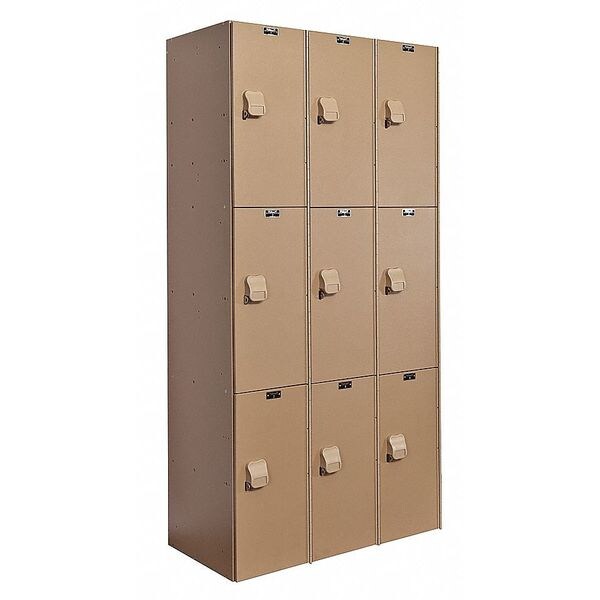 Wardrobe Locker, 36" W, 18" D, 72" H, (3) Wide, (9) Openings, Taupe (Discontinued)