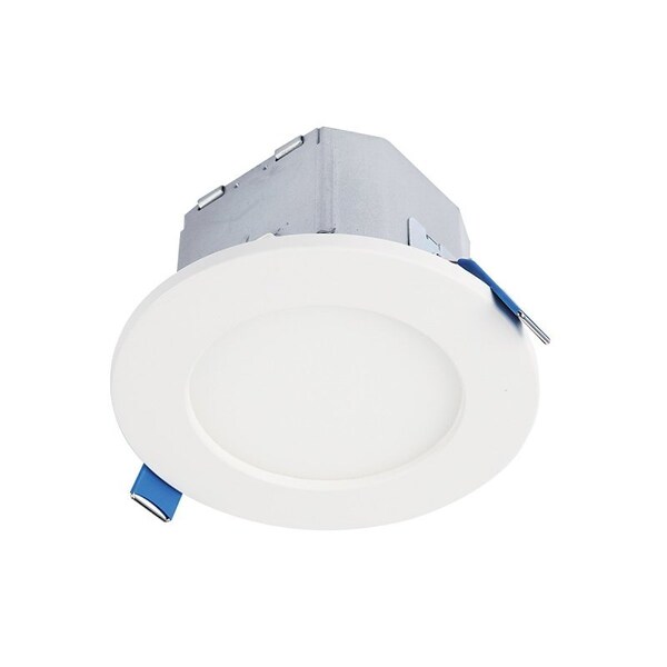 Halo CJB Downlight, 120 V, 0.067 A, Wattage Rating: 7.7 W, Trim Type: Decorative, Lamp Base: Integrated, Lamp Type: LED, Lamp Wattage: 60 W, Insulation Type: IC, Recessed Mounting, Ceiling Type: Sloped, Standard, Driver Type: Constant Current, Average Life: 35,000 hr, Lumens: 600 Lumens, Color Temperature: 5000 K, Color Rendering Index CRI: 90, Recessed Can Diameter: 4 in, Trim Color: White, Plastic, Matte, Dimmable: Dimmable, Dimensions: 5.72 in Dia x 2.72 in H, IP Rating: IP65
