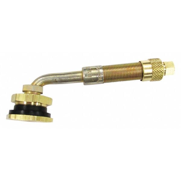 Swivel Valve, Product Type Swivel Valve, Mounting Type Clamp-In, Valve Stem Angle 80 Degrees , Valve Shape L-Shape, Valve Size Large Bore, Thread Size 31/64-26, Compatible Vehicle Type Trucks, Minimum Operating Air Pressure 0 psi, Maximum Operating Air Pressure 200 psi, Color Gold, Overall Length 3 1/8 in, Overall Diameter 1/2 in, Material Brass, Features 80 Degree Angle, Automatically Lock, Includes Spud, Maximum Operating Temperature 250 Degrees F, Maximum Rim Hole Size 0.812 in