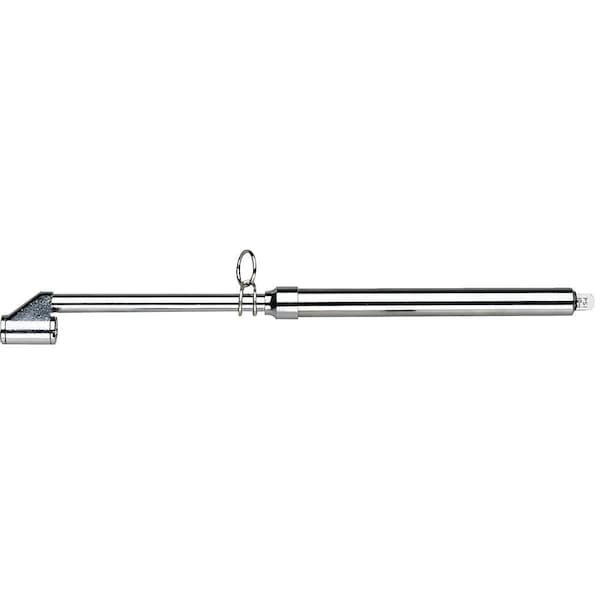 Tire Gauge features a forging design that has a straight-on connection and 180° reverse angle chuck that helps prevent scratching of aluminum wheels. easy-to-read nylon indicator bar with a hang-up ring. Calibration of 10 to 150 psi in 2-lb. increments. Chrome finish.