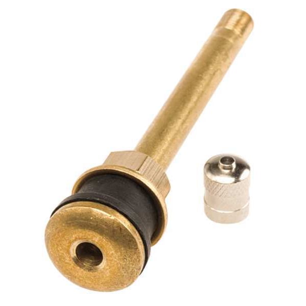 Truck/Bus Tire Valve, Product Type Tire Valve, Mounting Type Clamp-In, Valve Stem Angle 180 Degrees , Valve Shape Straight, Valve Size Standard Bore, Thread Size 0.305-32, Compatible Vehicle Type Buses, Trucks, Minimum Operating Air Pressure 0 psi, Maximum Operating Air Pressure 200 psi, Color Brass, Overall Length 3 3/8 in, Overall Diameter 1/4 in, Material Metal, Features Used on Both Demountable and Non-Demountable Rims, Includes G170 Grommet, Maximum Rim Hole Size 0.625 in