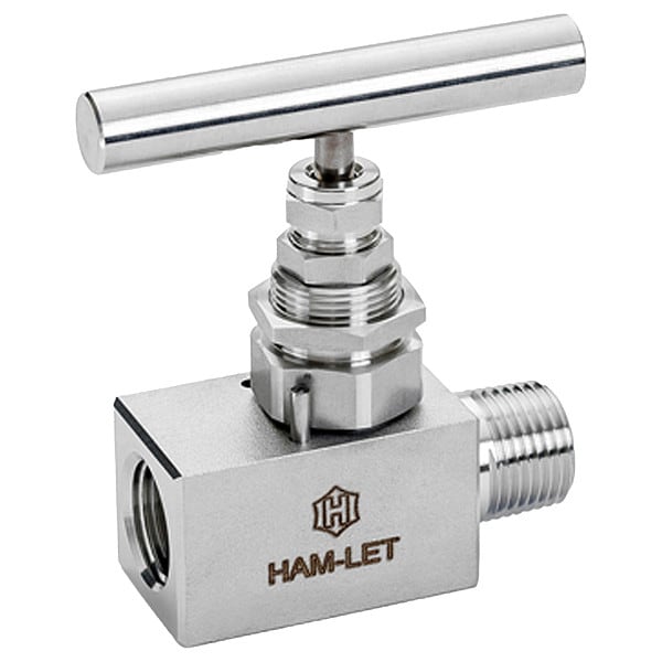 SS Screwed Bonnet Needle Valve, Straight, Body Material 316 Stainless Steel, Pipe Size 1/2 in, MNPT x FNPT Connection, Stem Type V-Stem, Seal Material PTFE, Length 2 4/5 in, Standards ISO 15848-1, ISO 2006(E)