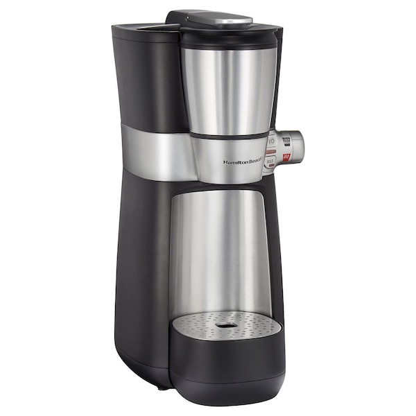 With other cold brew coffee makers, it can take 12 to 24 hours to make cold brew coffee. Why wait that long? with the Hamilton Beach convenient craft rapid cold brew & hot coffee maker, you'll enjoy smooth, cold brew coffee in less than 6 minutes. When you want to brew a cup of piping-hot coffee, the wait is even shorter - it takes just 3 minutes to brew a cup of hot coffee. Whether you brew hot or cold brew coffee, the removable stand lets you brew up to 16 oz. into a travel mug for coffee to go or brew into a traditional cup to enjoy at home. The Hamilton Beach convenient craft rapid cold brew & hot coffee maker is designed for brewing with your favorite ground coffee and eliminates the need to use expensive K-Cup pods. You can brew coffee your way with the regular and bold brew strength settings, too. Whether you want cold brew coffee for its smooth, less-acidic taste or traditional hot coffee, the Hamilton Beach convenient craft rapid cold brew & hot coffee maker gives you two brewing options in one space-saving machine. With this cold brew maker, you can enjoy smooth, cold brew coffee in less than 6 minutes without the usual 12 to 24 hour wait. When you want hot coffee, you can brew a piping-hot cup in 3 minutes. With this single-serve coffee maker, you can brew up to 16 oz. into a travel mug for easy portability. Why waste money on pods that limit your options. This cold brew machine uses your favorite ground coffee instead. Control how strong you want your coffee with bold and regular brew strength settings on this cold brew coffee machine. Brew a single cup with the stand in place or remove it to brew up to 16 oz. in a travel mug.