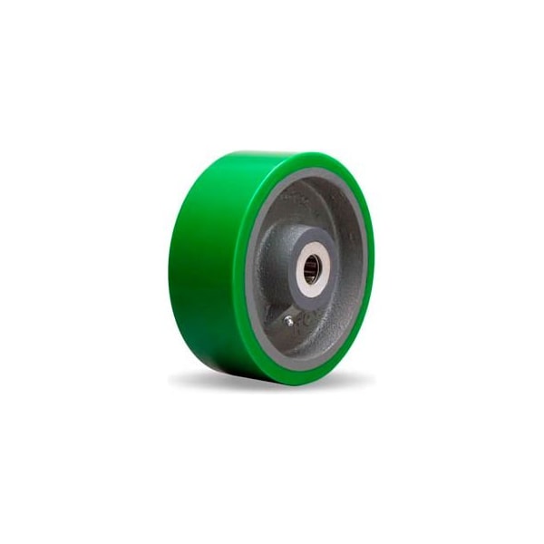 this wheel is liquid cast to a thickness of approximately 1/2" and chemically bonded onto heavy-duty iron wheel centers. The distinctive green treads are chemically inert, non-sparking, non-conductive, impervious to ozone, grease and most oil and solvents, and will not mark floors.