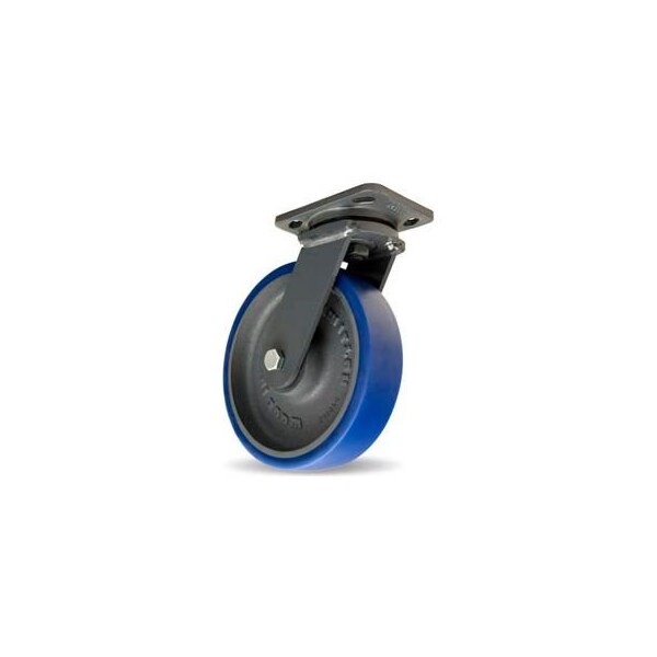 Hamilton caster workhorse forged swivel 8 x 2 poly-soft ball 1200 lb. the drop forged steel construction includes a 3/4" diameter integrally forged steel kingpin and a precision secondary load bearing. This workhorse caster combined the strength of forged steel with a standard bolt hole pattern.