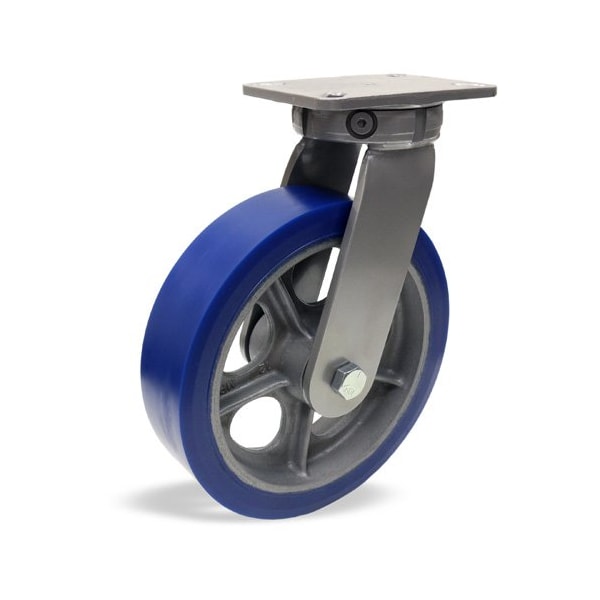 Champion Swivel Caster, 10" x 3" Ergo-Glide XT 1" thick Polyurethane (85A) on Cast Iron Wheel with 3/4" Sealed Precision Ball Bearings with Swivel Lock and Face Contact Brake