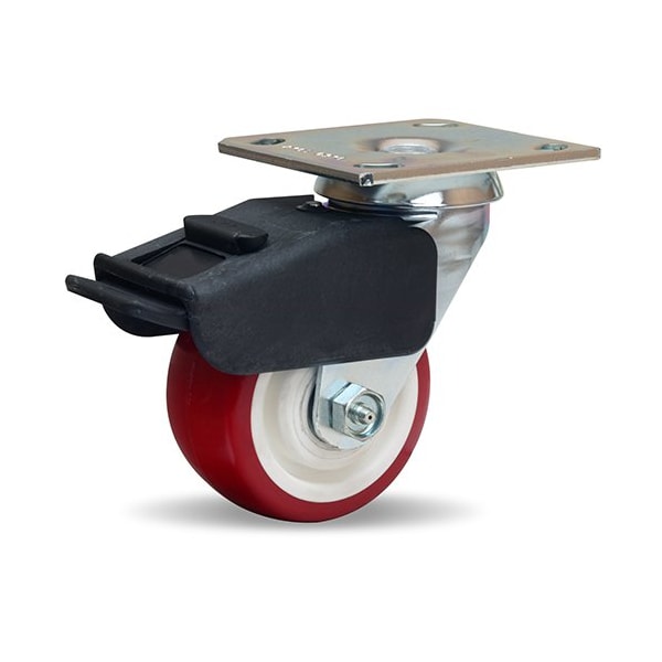 Combination Brake Swivel Caster, 4" x 2" Poly-Tech Polyurethane (95A) on Polypropylene Wheel
