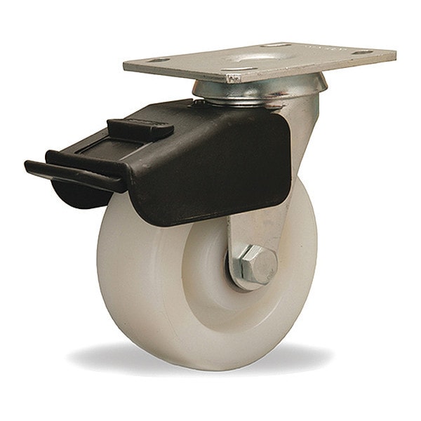 Combination Brake Swivel Caster, 5" x 2" White Nylon Wheel, 1/2" Precision Ball Bearing