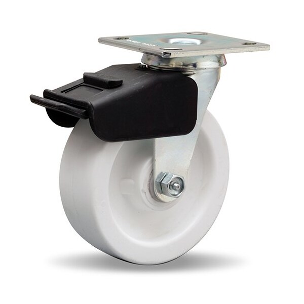 Combination Brake Swivel Caster, 6" x 2" Aqualite Polyolefin Wheel, 1/2" Delrin Bearing