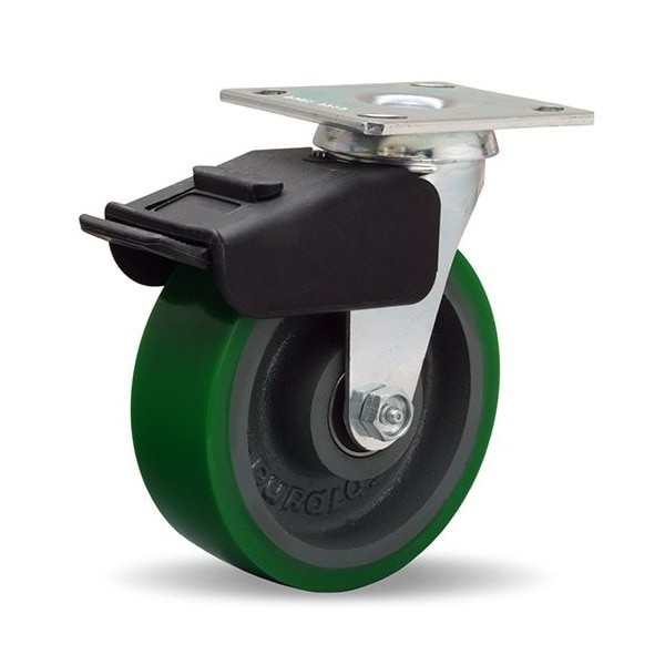 Combination Brake Swivel Caster, 6" x 2" Duralast Polyurethane (95A) on Cast Iron Wheel (Discontinued)