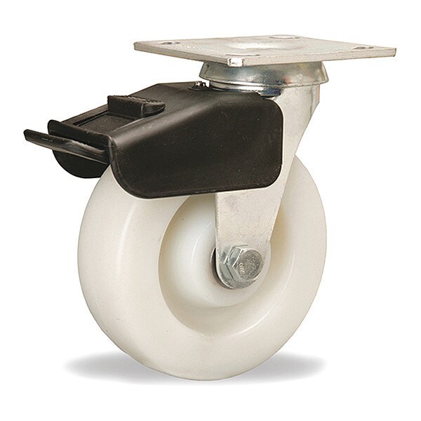 Combination Brake Swivel Caster, 6" x 2" White Nylon Wheel, 1/2" Precision Ball Bearing