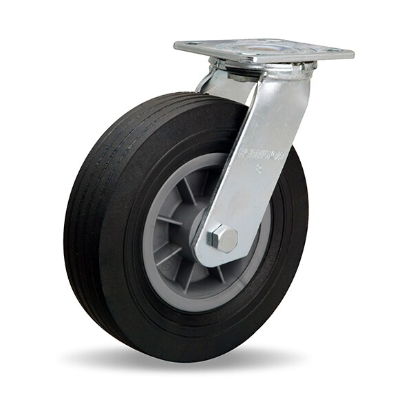 Cush-N-Tuf Swivel Caster, 8" x 2 1/2" Ace-Tuf Rubber (75A) on Light Duty Polypropylene Wheel